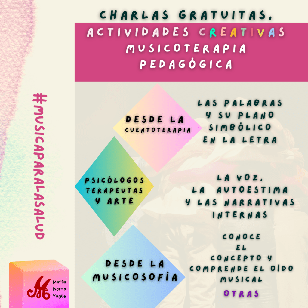 - Talleres basados en terapias artísticas y creativas, musicoterapia y cantoterapia